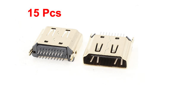 15pcs Gold Tone Mini Size 19Pin DIP HDMI Female Connector 180 Degree