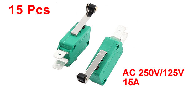 Roller Dia 5mm/0.20" Main Color Green,Silver Tone,Black Product Name Micro limit Switch Lever Length 28mm/1.1" Brand DMiotech Net Weight 111g Country of Manufacture CHINA Model KW3-OZ Package Content 15 x Micro Limit Switch Rating AC250V/125V 16A Material Plastic, Metal - Reviews