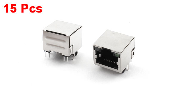 15pcs LED Light Right Angle Pin RJ45 8P8C PCB Jack Sockets 16mm for LAN Network