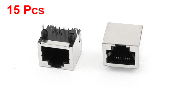 15pcs Shielded RJ45 8P8C Plastic Network Modular Connector Socket Silver Tone