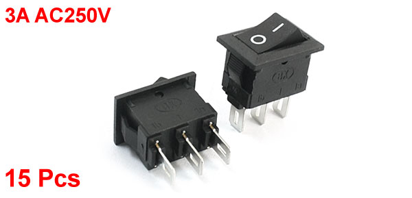 15Pcs SPDT ON/OFF 3 Pin Black Head Square Boat Rocker Switch AC250V 3A