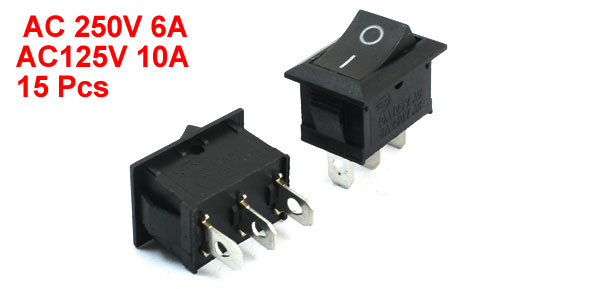 15Pcs SPDT ON/OFF 3Pin Black Head Rectangle Rocker Switch AC250V 6A AC125V 10A