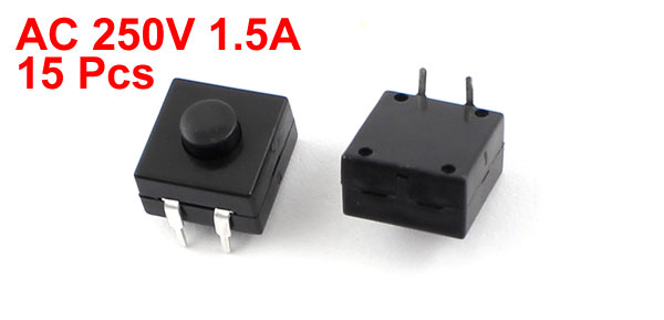 Main Color Black Product Name Torch Push Button Switch Overall Size 12 x 12 x 9mm/ 0.47" x 0.47" x 0.35" (L*W*H) Rated AC 250V 1.5A Net Weight 18g Action Type Latching Country of Manufacture CHINA Package Content 15Pcs x Torch Push Button Switch Button Diameter 5mm Material Plastioc, Metal Contact Type SPST Pin Number 2 - Reviews