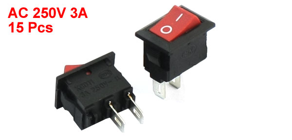 15Pcs SPST ON/OFF 2 Pin Red Head Rectangle Boat Rocker Switch AC250V 3A