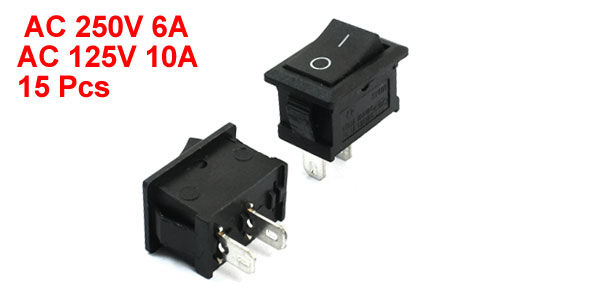 15Pcs SPST ON/OFF 2Pin Black Head Rectangle Rocker Switch AC250V 6A AC125V 10A
