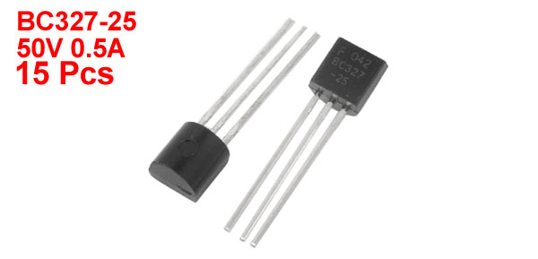 Details15Pcs TO-92 BC327-25 NPN Epitaxial Silicon Transistor 50V 0.5A 0.625W  Product Name NPN Epitaxial Silicon Transistor Model BC327-25 Collector-base Voltage 50V Emitter-base Voltage 5V Collector Current (DC) 0.5A Total Power Dissipation 0.625W Storage Temperature -65 to 150 C Color Black, Silver Tone Weight 2g Package Content 15 x NPN Epitaxial Silicon Transistor