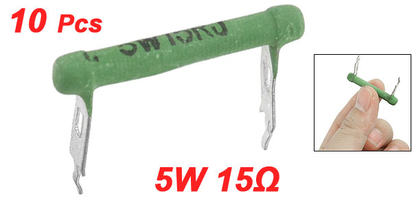 Product Name Wire Wound Resistor Type Fixed Type Rated Power 5W Resistance 15 Ω Resistance Tolerance ±5% (J) Material Metal, Ceramic Size 35 x 5 x 25mm/ 1.4" x 0.2" x 1" (L*W*H) Color Green Weight 23g Package Content 10 x Wire Wound Resistors - Reviews
