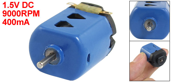 Product Name DC Motor Model 130 Rated Voltage 1.5VDC Speed 9000RPM Current 400mA Pin Quantity 2 Shaft Size 2 x 7mm/ 0.08" x 0.28" (D*L) Body Size 27 x 20 x 15mm/ 1" x 0.8" x 0.6" (L*W*T) Main Color Dark Blue, Black Material Metal, Electronic Parts Weight 19g Package 1 x DC Motor - Reviews