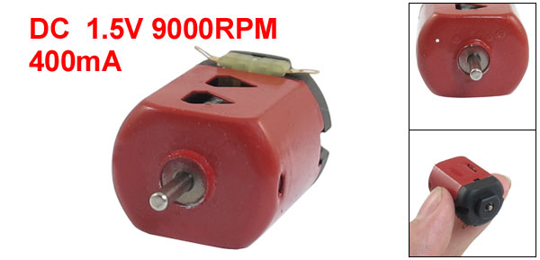 Product Name DC Motor Model 130 Rated Voltage 1.5VDC Current 400mA Speed 9000RPM Pin Quantity 2 Shaft Size 2 x 7mm/ 0.08" x 0.28" (D*L) Body Size 27 x 20 x 15mm/ 1" x 0.8" x 0.6" (L*W*T) Main Color Red, Black Material Metal, Electronic Parts Weight 19g Package 1 x DC Motor  - Reviews