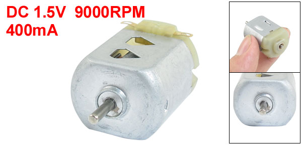 Product Name DC Motor Model 130 Rated Voltage 1.5VDC Current 400mA Speed 9000RPM Pin Quantity 2 Shaft Size 2 x 7mm/ 0.08" x 0.28" (D*L) Body Size 27 x 20 x 15mm/ 1" x 0.8" x 0.6" (L*W*T) Main Color Silver Tone Material Metal, Electronic Parts Weight 19g Package 1 x DC Motor - Reviews