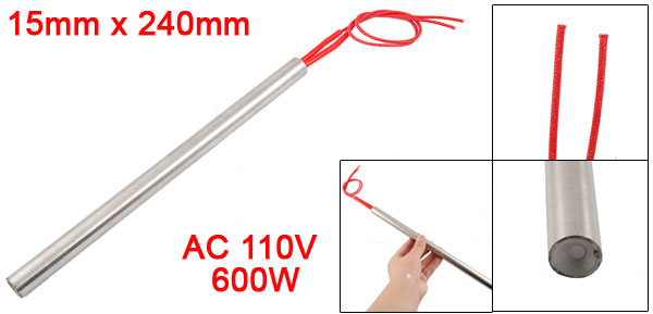 Product Name Cartridge Heater Main Material Stainless Steel, Nylon, PVC Rated Voltage AC 110V Power 600W Heater Size (Approx.) 15 x 240mm/ 0.59" x 9.44" (D * L)