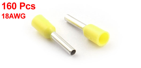 160 Pcs E1008 1.0mm2 18AWG Wire Yellow Insulation Tublar Ends Cable Terminals