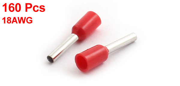 160 Pcs E1008 18AWG Wire Red Tublar Insulated Cable Wiring Ferrules Terminals