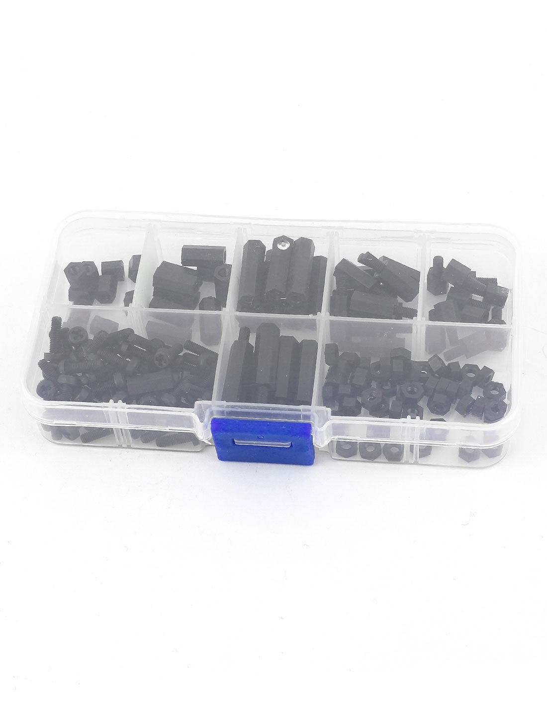 160 Pcs M3 Nylon Hex Spacers Screw Nut Stand-off Assortment Kit Black