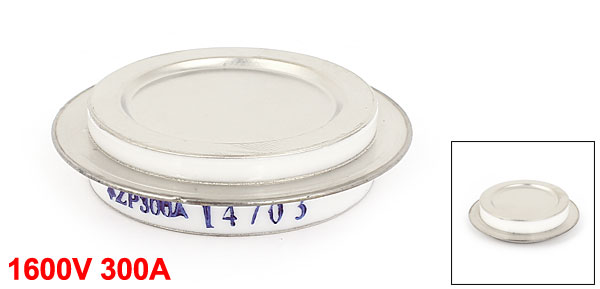 Product Name Flat Controlled Rectifier Model ZP300A Max. Repetitive Peak Reverse Voltage 1600V Max. Average Forward Current 300A Total Size 5.6 x 1.3cm/ 2.2" x 0.5"(Dia*T) Color Silver Tone Material Metal, Silicon, Ceramic Net Weight 111g Package Content 1 x Flat Controlled Rectifier - Reviews