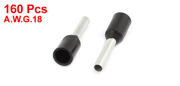 160pcs E1008 AWG18 Black Sleeve Insulated Pin Terminal Connectors