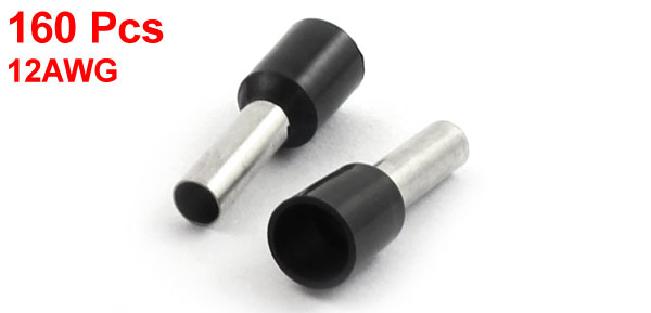 160Pieces E4009 12AWG 4.0mm2 Wire Black Insulated Tube Ends Terminals Connectors