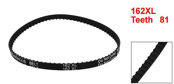 Product Name Timing Belt Model 162XL Code Number 031 Number of Teeth 81 Teeth Pitch 5.08mm / 0.2" Belt Width 7.9mm / 0.3" Pitch Length 411.48mm/ 16.2" Material Rubber Color Black Weight 5g Package Content 1 x Timing Belt - Reviews