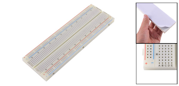 Product Name Solderless Breadboard Color Offwhite, Red, Blue Size 165 x 55 x 8mm / 6.5" x 2.2" x 0.3" (L*W*T) Main Material Plastic, Electronic Components Connector Aquantity 680Pcs Net Weight 104g Package Content 1 x Solderless Breadboard - Reviews