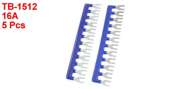 16A 12-Postion Fork Pre Insulated Barrier Terminal Strip Blue 5 Pcs