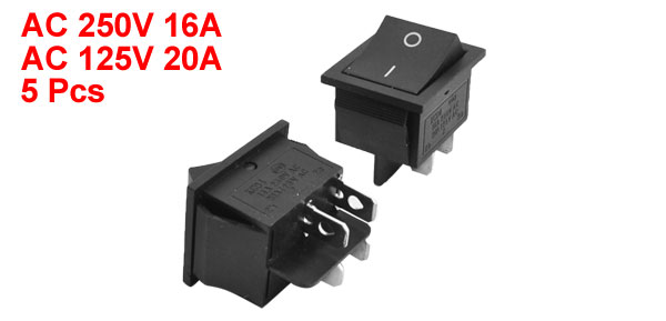Terminals 4 Pins Position On-Off Rated Voltage 16A 250VAC, 20A 125VAC Overall Size 32 x 25 x 25mm / 1.3" x 1" x 1" (L*W*T Mounting Size 31 x 13mm / 1.2" x 0.51" (L*W) Color Black Material Plastic, Metal Total Weight 55g Package Content 5 Pcs x Rocker Switches - Reviews