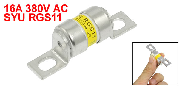 Product Name Bolt Connected Fuse Model SYU RGS11 Type Fast Blow Rated Voltage 380V Rated Current 16A Total Size 56 x 17mm / 2.2" x 0.67" (L*D) Hole Size 8.2 x5.8mm / 0.3"x 0.2" (L*W) Material Metal, Ceramic Main Color Silver Tone Weight 23g Package Content 1 x Bolt Connected Fuse - Reviews