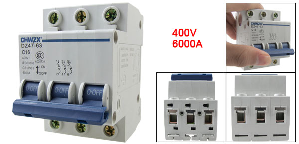Product Name Circuit Breaker Material Plastic, Electric Components Type C16 Rated Voltage 400V Rated Circuit Breaking Capacity 6000A Rated Current 16A Total Size (Approx.) 7.7 x 6.5 x 5.2cm / 3" x 2.5" x 2" (L * W * T ) Number of Poles 3 Color As Picture Shown Weight 253g Package Content 1 x Circuit Breaker - Reviews