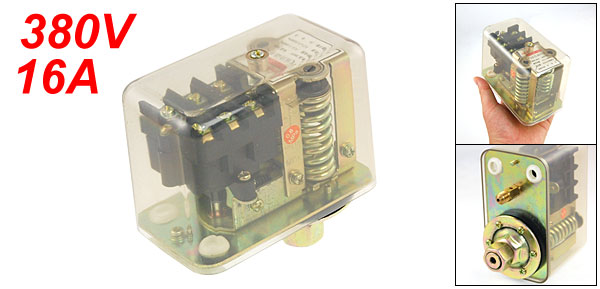 Product Name Automatic Pressure Switch Medium Air Series GYD20-16 Rated Current 16A Rated Voltage 380V Rated Pressure 1.0mpa / 145PSI Regulated Pressure Range 0.4-1.0MPa / 58-145PSI Pressure Difference 0.3±0.05mpa / 43.5±7.25PSI Joint Thread Diameter 16mm / 5/8" Air Inlet Hole Diameter 2.3mm / 3/16" Air Inlet Thread Diameter 10mm / 0.39" Size 11.5 x 7.5 x 8.5cm / 4.5" x 3" x 3.3"(L*W*T) Material Plastic, Metal, Electric Parts Color Bronze Tone, Clear Net Weight 698g Package Content 1 x Automatic Pressure Switch - Reviews