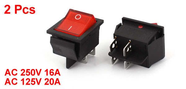 Product Name Rocker Switch Pins 4-Pin Main Color Black,Red Rated AC 250V 16A, AC 125V 20A Net Weight 26g Country of Manufacture CHINA Package Content 14 x 10 x 5 Material Plastic,Metal Contact Type DPST Total Size 32 x 25 x 35mm/1.2" x 1" x 1.3"(L*W*H) Positions 2 Position Mount Size 25 x 21mm/1" x 0.83"(L*W) - Reviews