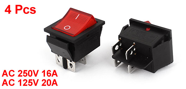 16A AC 250V 20A AC 125V 4Pin 2Position DPST Rocker Switch 4 Pcs