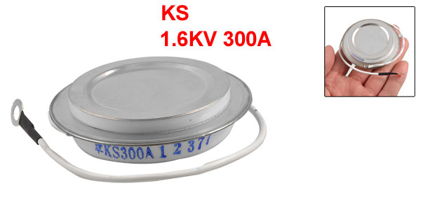 Product Name Thyristor Model KS Material Metal, Silicon, Ceramic Max. Repetitive Peak Reverse Voltage 1.6KV Max. Average Forward Current 300A Total Size 5.6 x 1.4cm/2.2" x 0.6" (Dia*T) Wire Length 21cm/8.3" Color Silver Tone Net Weight 105g Package Content 1 x Thyristor - Reviews