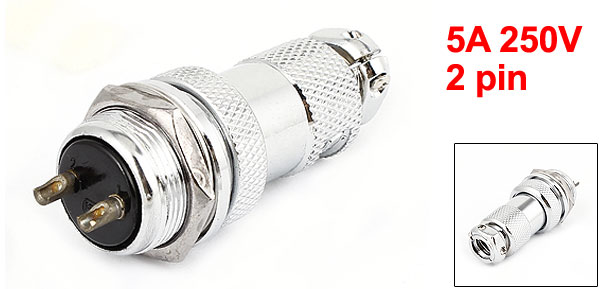Product Name Aviation Plug Model GX 16-2 Plug Diameter 16mm/ 0.63" Hole Dia 6.5mm/ 0.25" Pin Number 2 Pin Material Metal Color Silver Tone Rated Voltage 250V Rated Current 5A Contact Resistance <0.01Ω Insulation Resistance >500MΩ Size 18×42mm/ 0.7" x 1.7" ( D*H) Net Weight 41g Package Content 1 x Aviation Plug - Reviews