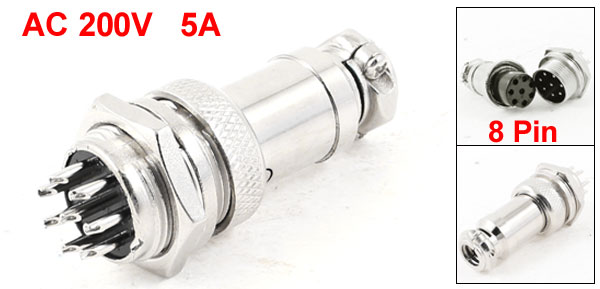 16mm 8 Pin Male Female Metal Aviation Plug Connector 5A 200V AC