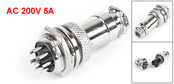 Product Name Aviation Connector Plug Working Voltage AC 200V Working Current 5A Withstand Voltage AC 1000V Pin Quantity 9 Pin Inner Thread Diameter 7mm/ 7/25" Outer Thread Diameter 16mm/ 5/8" Total Size 21 x 46.5mm/ 0.83" x 1.8" (max.D*L) Material Metal Color Silver Tone Weight 20g Package 1 x Aviation Connector Plug - Reviews