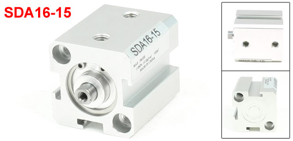 Product Name Air Cylinder Model SDA16-15 Action Type Double Action Bore 16mm Stroke 15mm Max Presssure 1.0Mpa / 10.2Kg/cm² / 145PSI Rod Diameter 10mm / 0.4"' Rod Thread Diameter 4mm / 0.15" Air Hole Diameter 4mm / 0.15" Mounting Hole Diameter 6mm / 0.23" Mounting Hole Distance(center to center) 26mm / 1"