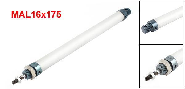 Product Name Air Cylinder Model MAL16x175 Rod Type Single Rod Action Type Double Action Bore 16 mm Stroke 175 mm Hole Diameter 6mm / 0.24" Thread Rod Diameter 6 mm / 0.24" Thread Tang End Size 16 x 12 mm / 0.63" x 0.47" (D*T) Total Size (Approx.) 285 x 24 mm / 11.2" x 0.94" (L*Max.D) Main Material Aluminum Alloy Color Silver Tone, Steel Blue Weight 208g Package Content 1 x Air Cylinder - Reviews