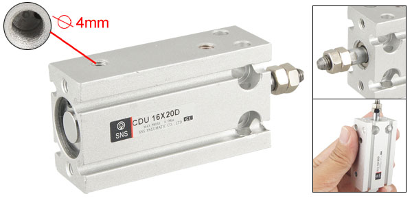 Product Name CDU Air Cylinder Model CDU 16X20D Bore 16mm Stroke 20mm Mounting Screw 5mm Inlet / Outlet Hole Dia. 4mm Max Press 0.7Mpa Overall Size(Approx) 60 x 32 x 20mm / 2.4" x 1.26" x 0.8"(L*W*H) Material Stainless Steel Color Silver Tone Weight 86g Package Content 1 x Air Cylinder - Reviews