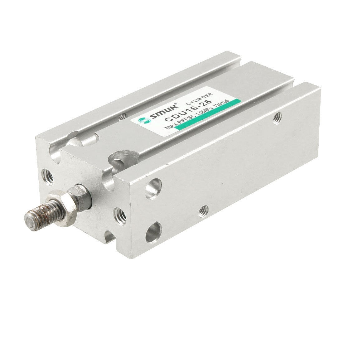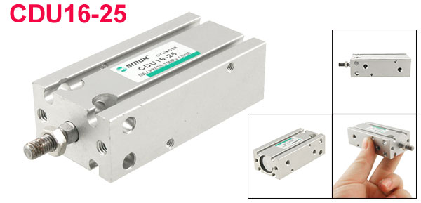 Product Name Air Cylinder Model CDU16-25 Action Double Action Rod Type Single Rod Bore 16mm Stroke 25mm Rod Diameter 6mm Thread Hole Diameter 4mm Rod Thread Diameter 5mm Mount Hole Dia. 5mm Max Press 1.0Mpa Overall Size(Approx) 88 x 32 x 22mm/ 3.5" x 1.3" x 0.87" (L*W*T) Material Aluminum Alloy Weight 96g Package Content 1 x Air Cylinder - Reviews