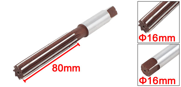 Product Name Machine Reamer Material HSS Flute Number 8 Cutting Diameter 16mm / 0.63" Cutting Depth 80mm / 3.15" Shank Diameter 16mm / 0.63" Total Length 150mm / 6" Color Silver Tone, Brown Weight 180g Package Content 1 x Machine Reamer - Reviews