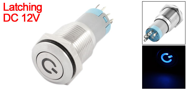 Item Name Push Button Switch Model MP016S/F11Z Contact Type SPDT(1NO 1NC) Action Type Latching Type Light Voltage DC 12V Light Color Blue Pin Number 5 Button Cap Dia 12mm/0.47" Mounting Thread Dia. 16mm/ 0.63" Total Size 22 x 35mm/ 0.87" x 1.4"(Max.D*H) Material Stainless Steel, Electronic Parts Color Silver Tone Weight 16g Package Content 1 x Push Button Switch - Reviews