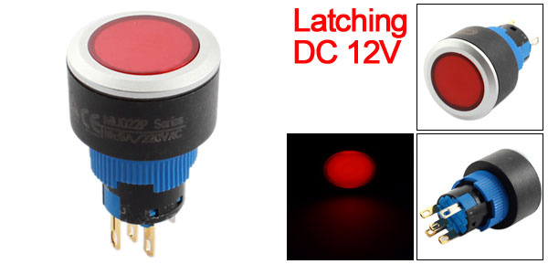 16mm Dia Thread SPDT 5Pin Latching Red Pilot Lamp Push Button Switch DC 12V