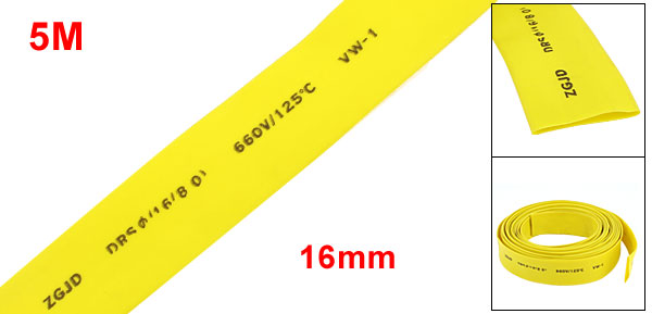 16mm Diameter Heat Shrinkable Tube Shrink Tubing Wire Wrap 5M 16Ft Yellow