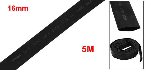 16mm Diameter Heat Shrinkable Tube Shrink Tubing Wire Wrap Sleeve 5M 16Ft Black