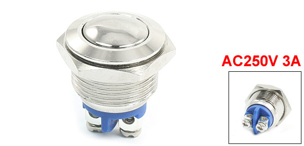 Item Name Push Button Switch Action Type Momentary Type Head Shape Round Head Contact SPST(ON/OFF ) Switch Rating AC250V 3A Terminals Number 2 Thread Diameter 16mm/0.63" Total Size 23 x 19mm/ 0.91" x 0.75"(L*Max.W) Material Metal, Plastic, Electric Parts Housing Color Silver Tone Weight 13g Package Content 1 x Push Button Switch - Reviews