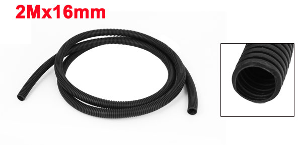 16mm OD Black Plastic Flexible Corrugated Bellow Cable Conduit Tube Pipe 2M