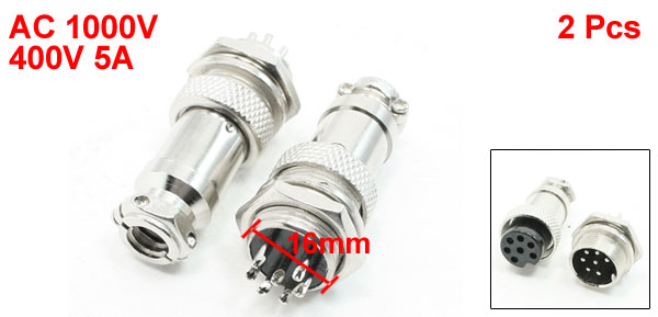 16mm Panel Mounting 7 Pin Male Female Metal Aviation Connector Plug 2Pcs