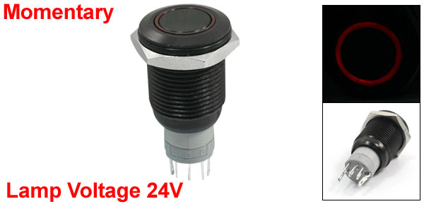 Item Name Push Button Switch Action Type Momentary Type Head Shape Round Flat Head LED Type Ring-Illuminated LED Contact SPDT(1NO 1NC 1Com ) Switch Rating 250VAC 3A LED Color Red Lamp Voltage 24V Pin Number 5 Thread Diameter 16mm/0.63" Total Size 38 x 19mm/1.5" x 0.75"(L*Max.W) Material Metal, Plastic, Electric Parts Housing Color Black, Gray Weight 9g Package Content 1 x Push Button Switch - Reviews