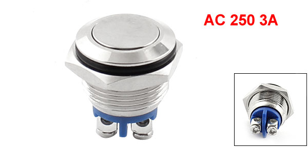 Item Name Metal Push Button Switch Operation Type Momentary Contact SPST Pin Number 2 Switch Rating AC 250V, 3A Thread Diameter 16mm/0.63" Total Size 22 x 22mm/0.87" x 0.87"(L*Max.W) Material Metal, Electric Parts Housing Color Silver Tone Net Weight 12g Package Content 1 x Metal Push Button Switch - Reviews