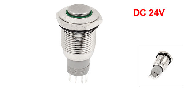 16mm Thread DC 24V Green LED Lamp 5P SPDT 1NO 1NC Momentary Push Button Switch