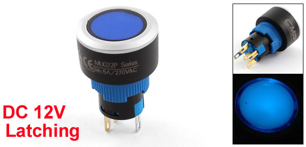 Item Name Push Button Switch Model MU22P/F11Z Contact Type SPDT(1NO 1NC) Action Type Latching Type Rating AC 220V 5A Light Voltage DC 12V Light Color Blue Pin Number 5 Button Cap Dia 18mm/0.71" Mounting Thread Dia. 16mm/ 0.63" Total Size 25 x 33mm/1" x 1.3"(D*H) Material Plastic, Electronic Parts Color Blue, Black Weight 12g Package Content 1 x Push Button Switch - Reviews